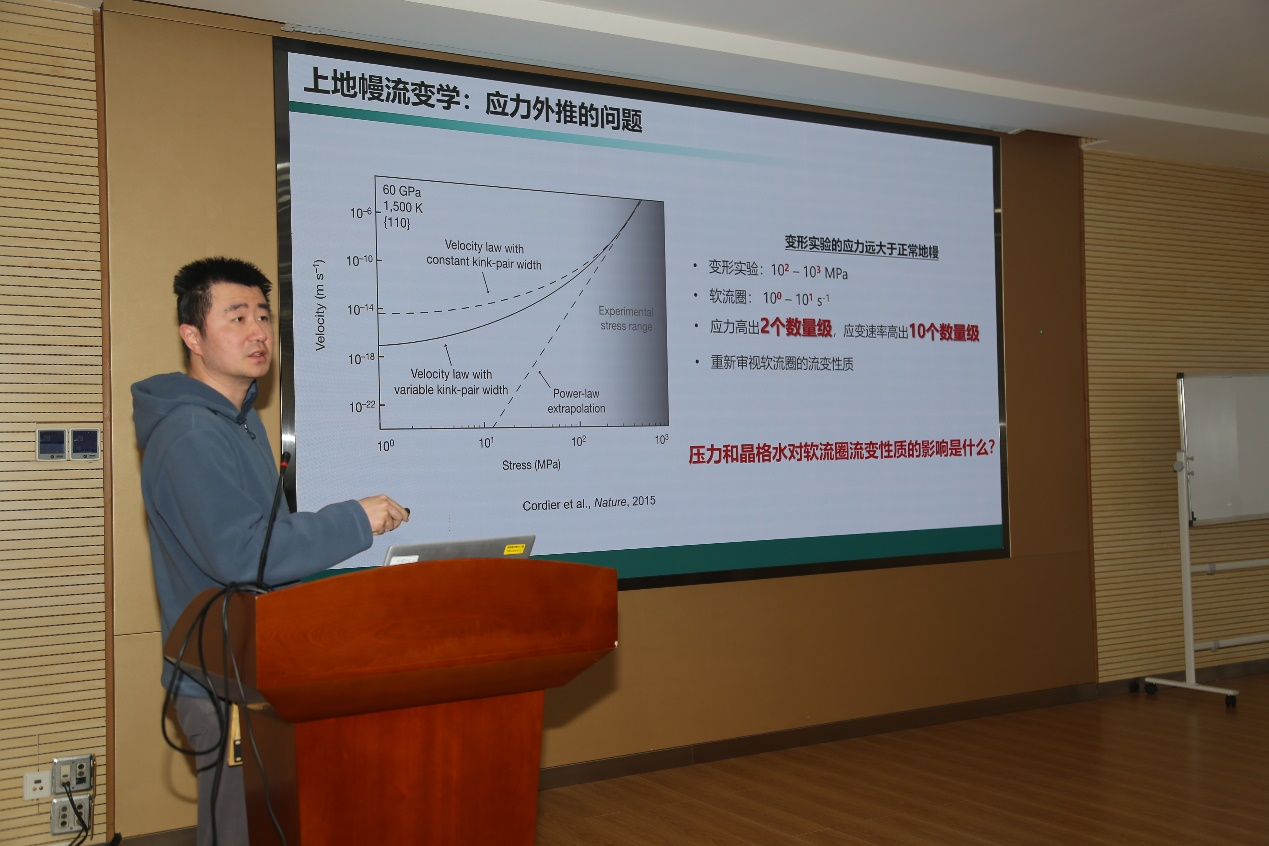 王林研究员作了题为“高温高压实验探究地球深部过程”的报告。报告首先介绍了为什么要研究深部地球,即深部地球研究的重要科学意义,着重强调了深部过程决定浅部环境,以及地球内部结构单元的形成和活动决定地球的演化过程和宜居性。然后,详细介绍了目前模拟地球深部过程用到的主要高温高压实验装置,以及不同高温高压实验装置的优缺点,强调高温高压实验是技术手段而非科学问题。接着,王林研究员就其前期已开展的3项研究工作(分别是上地幔流变学、下地幔实验岩石学、应力对核幔分异的影响等)进行了详细的介绍。报告最后对大腔体压机实验技术手段在矿床学研究工作中的应用进行了展望。